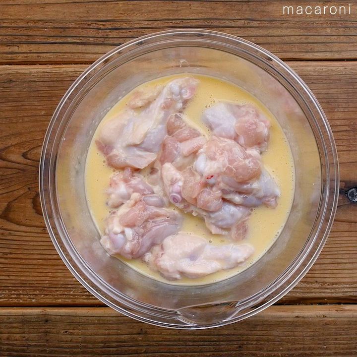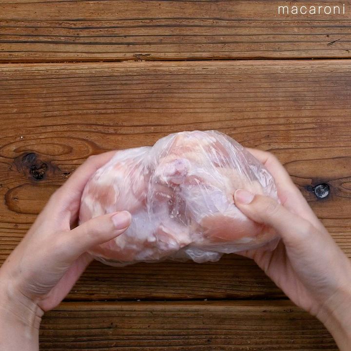 2: 袋に鶏肉、【下味】を入れて揉み込み、10分置きます。