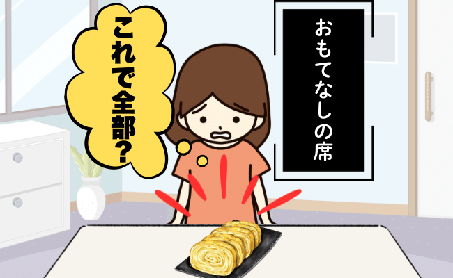 しかし、私は目の前に並んだ料理を見て一瞬戸惑ってしまいました。おもてなしの席にしては、少し寂しい内容だったのです。もしかしたらまだ他に料理があるのかもと思い直し、夫や伯母夫婦と一緒に食事を始めました。