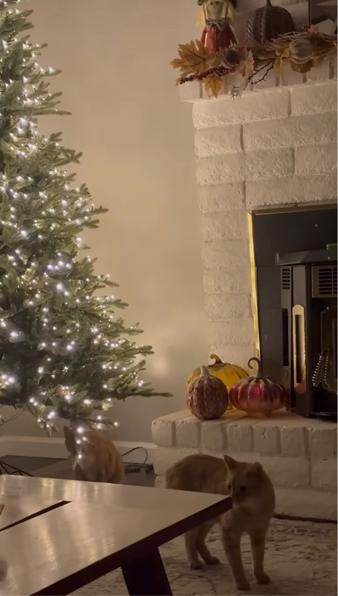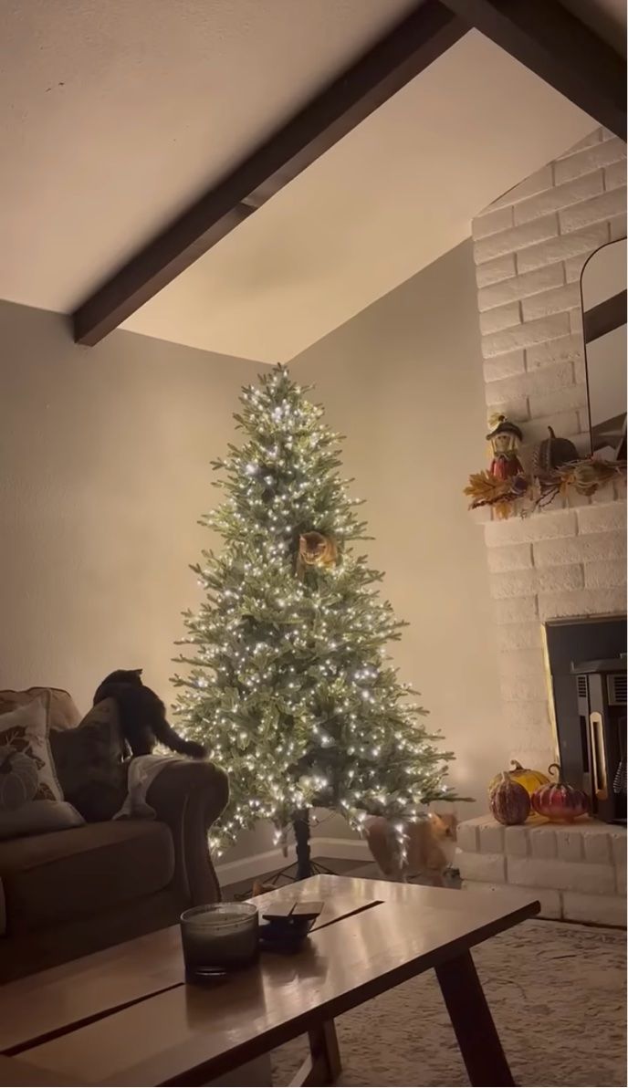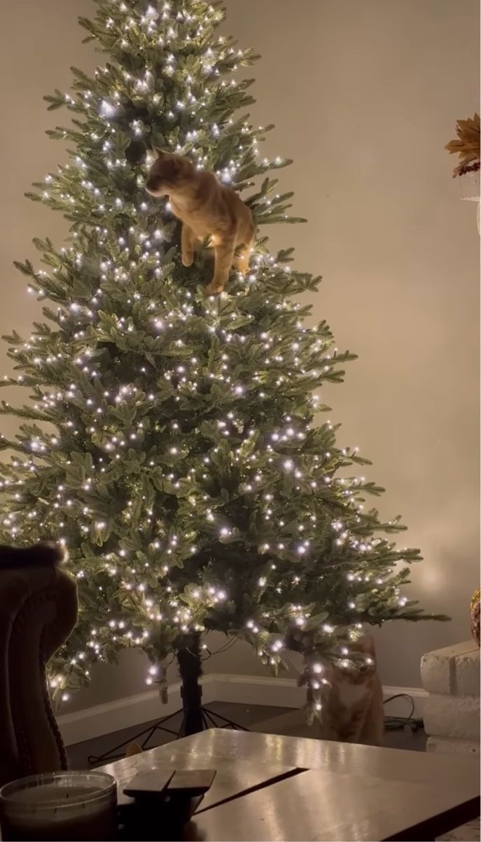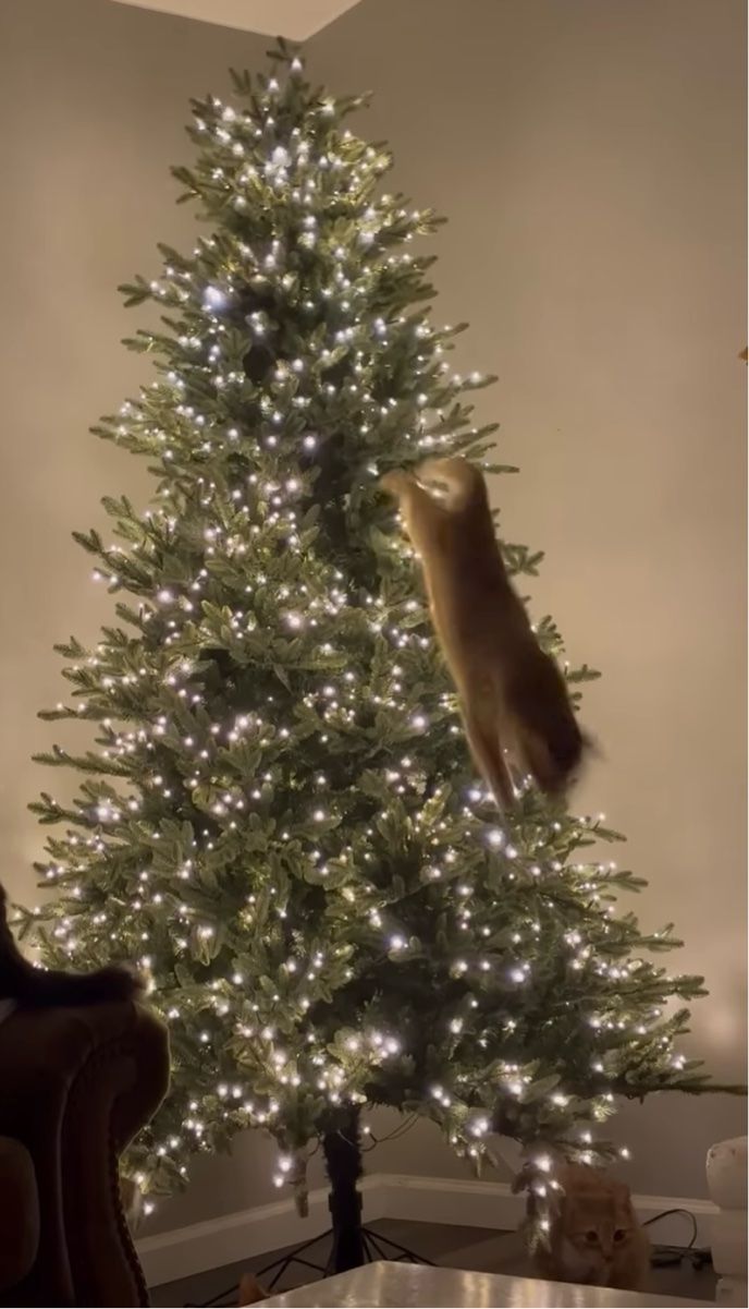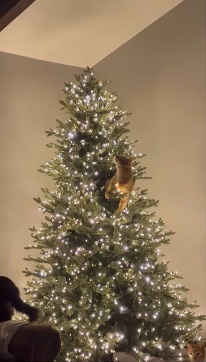 クリスマスツリーのオーナメントが動いた!?と思ったらネコが登っていた!!【アメリカ・動画】