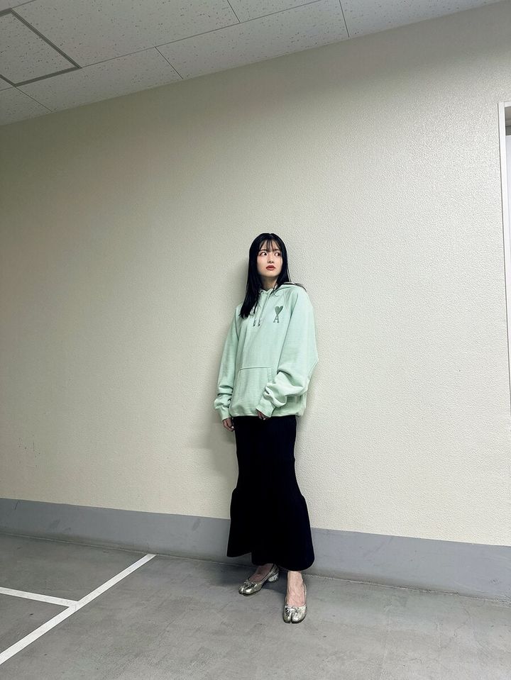 アミパリスのスウェット、cfclのワンピース、メゾンマルジェラのシューズ/以上すべて本人私物