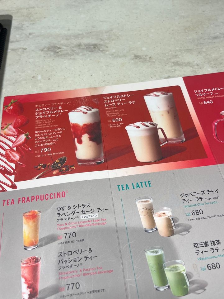 ドリンクは『ジョイフルメドレー ストロベリー ムース ティー ラテ』(ホット)を注文しました。