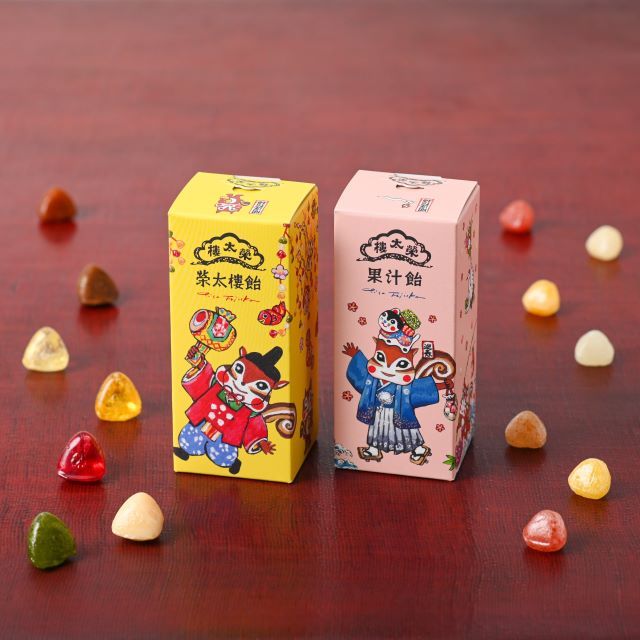榮太樓總本鋪の定番「榮太樓飴」と国産果物を使用した、無香料・無着色の「果汁飴」がイラストレーターの藤岡ちささんとコラボした可愛い「ちさリス年賀 榮太樓飴・果汁飴」。パッケージはお正月らしい装いのリスのイラスト。縁起のよいものがたくさん描かれた、お年賀限定のパッケージは、カラフルで贈り物にもぴったりです。