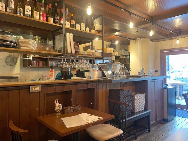 カウンターにはグラスやお酒も並んでおり、夜はディナーも楽しめるお店。ゆっくりできそうです♪