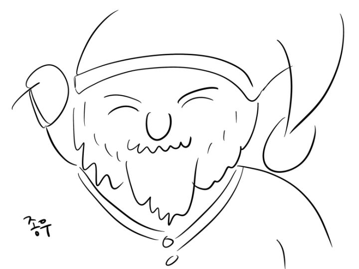 実は、この帽子は僕が描いたものではなく、JONG WOOさんが追加で描きました。この帽子がないとあまりにも怖いと言って…。