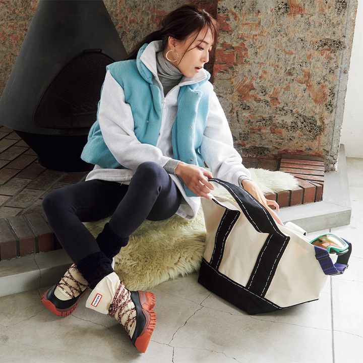 ブーツ[H5cm]¥33,000(ハンター/ハンタージャパン カスタマーサービス)ダウンベスト¥99,000(オーラリー)ハーフジップスウェット¥34,100(フィーニー)タートルニット¥26,400(ギャルリー・ヴィー/ギャルリー・ヴィー 丸の内店)レギンス¥23,100(SEA/エスストア)ソックス¥6,380(ホイサム)ピアス¥22,000(ブランイリス/ブランイリス トーキョー)バッグ¥66,000(クーキーズー/ロンハーマン)