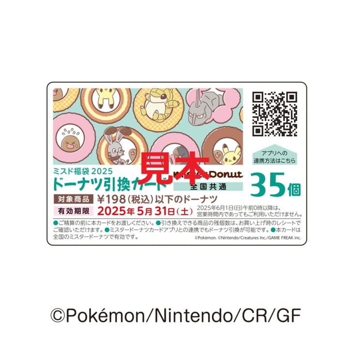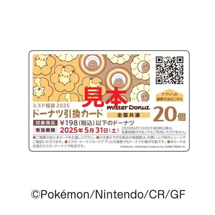今年も「ドーナツ引換カード20個分」がついてきます! 引換カードは購入した日から、引換期限の2025年5月31日(土)まで使用可能です。198円(税込)以下のドーナツを、全国のミスタードーナツ店で引き換えられます。
