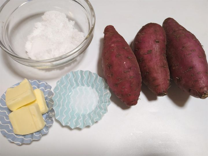 塩でさつまいもの甘味を引き出しますよ。