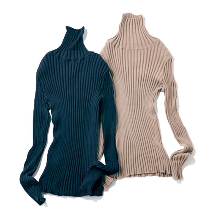 11月号で大ヒットしたニットに新色ネイビーとベージュが追加!さらりと軽やかな肌触りの綿混素材で、リブニットながらも締め付け感なく、ほんのりシアーなのも上品。手洗い可。