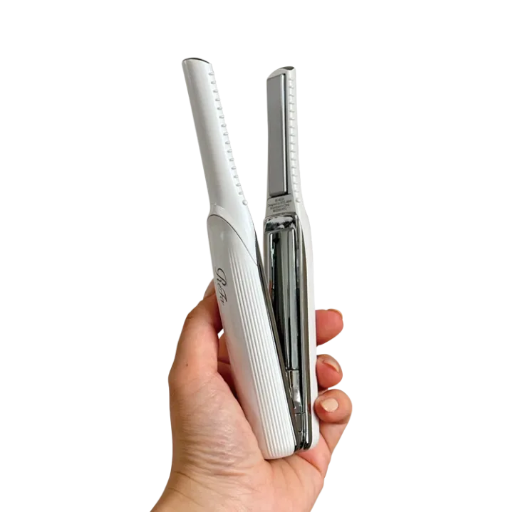 「リファのフィンガーアイロンは、とにかくコンパクトなサイズ感が旅にぴったり。前髪やおくれ毛など、こまかい部分のスタイリングがしやすいのもうれしいポイント!」