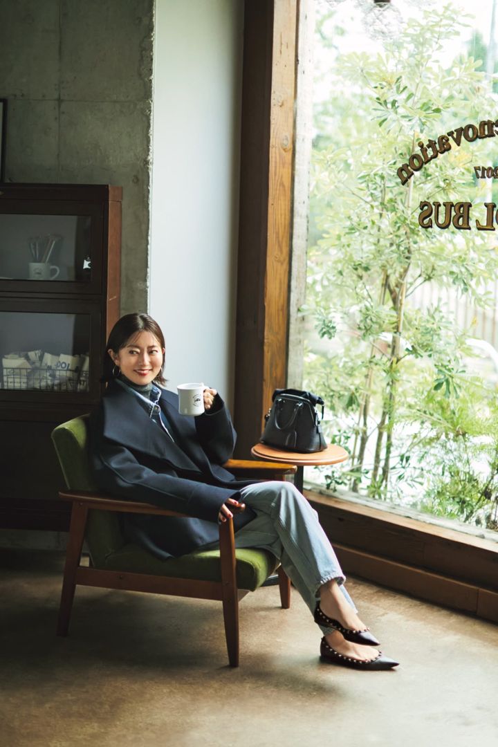 コート¥27,500(スリースクエア)ニット¥14,960(クードシャンス/ワールド プレスインフォメーション)パンツ¥21,000(バナナ・リパブリック)バッグ¥25,300(ロー ソウル)ピアス¥88,000〈ウノアエレ〉リング¥13,200〈ワンエーアールバイウノアエレ〉(ともにウノアエレ ジャパン)ネックレス¥16,500(ココシュニック オンキッチュ/ココシュニック)