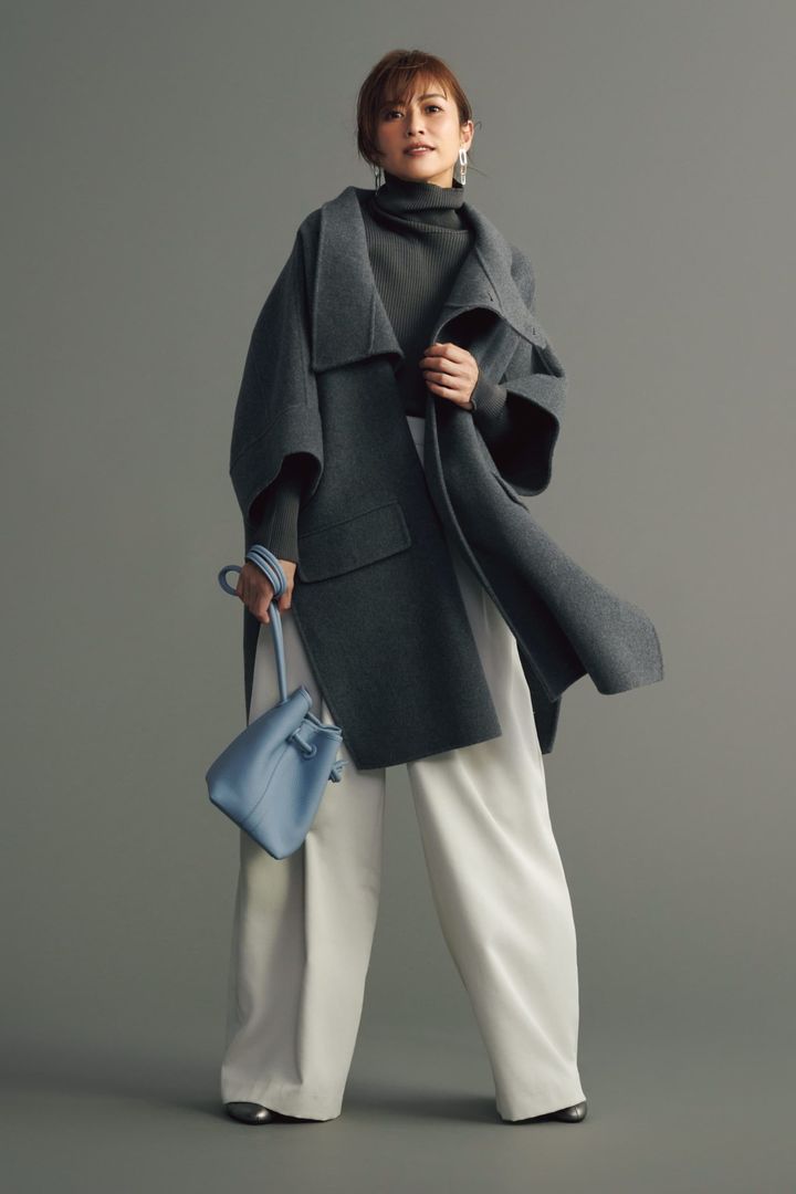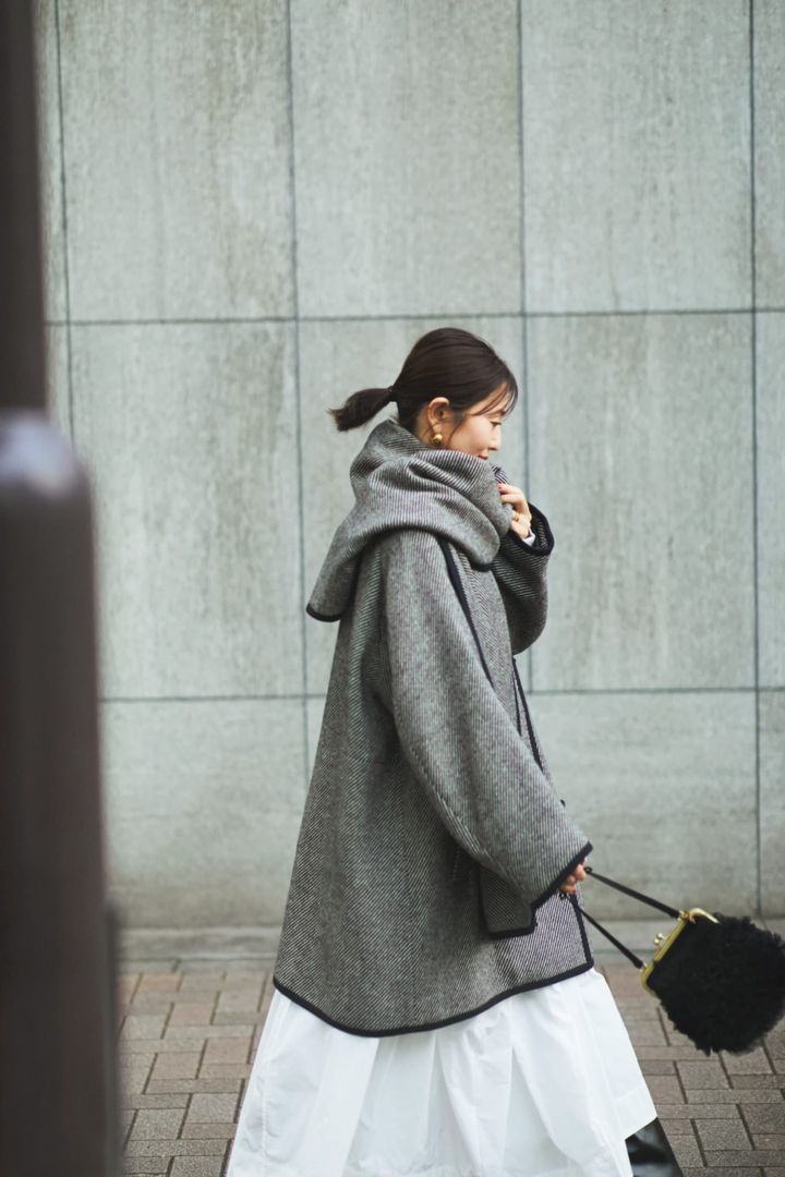 7.ポンチョ風コートで防寒もシルエットも完璧に