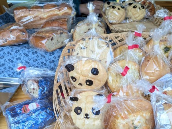 人気ナンバーワンの食パン(450円)と、ワインのお供にもぴったりという「めんたいフライパン」は、数が少なかったので、開店と同時に売り切れました。 パンダのパッケージが可愛い「メロンパン」のクッキー生地には、四つ葉バターを使っているので風味が良いです。「オニオンツナパン」や「たまごマヨパン」などのお惣菜系は、小ぶりなので、子どものおやつにもぴったりなサイズ。