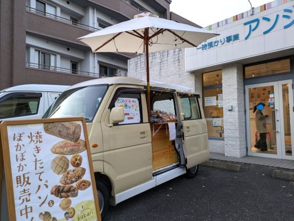 福岡市地下鉄七隈線別府駅のすぐ近く。以前取材したアンジュmyキッチン(アンジュブラン中村学園前)の駐車スペースに停まっていたキッチンカーが、ご紹介する「パン工房kukuri」(ククリ)です。