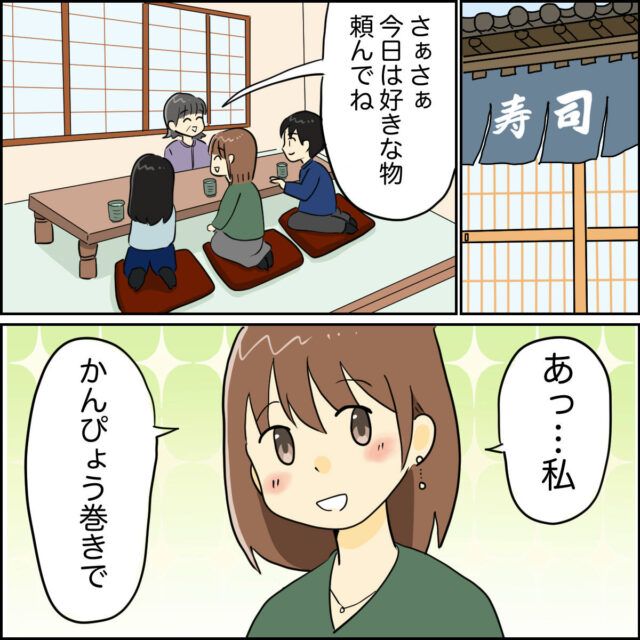 3. 息子家族を馴染みの寿司屋へ連れてきたら嫁の注文はかんぴょう巻きばかり。嫁いびりと思われる?[1-1]|ママ広場マンガ