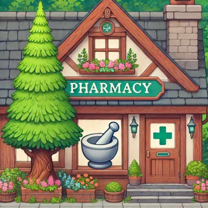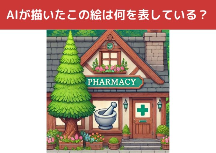 PHARMACYを日本語にすることと、建物の近くに生えている木の種類がヒント!正解が知りたい人はもう少しスクロールしてみて!
