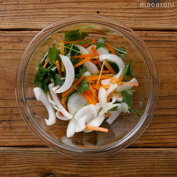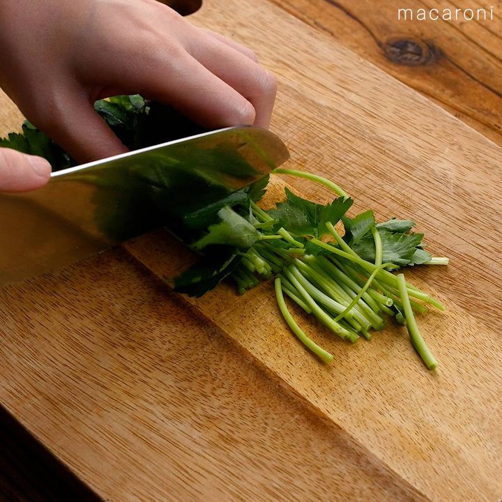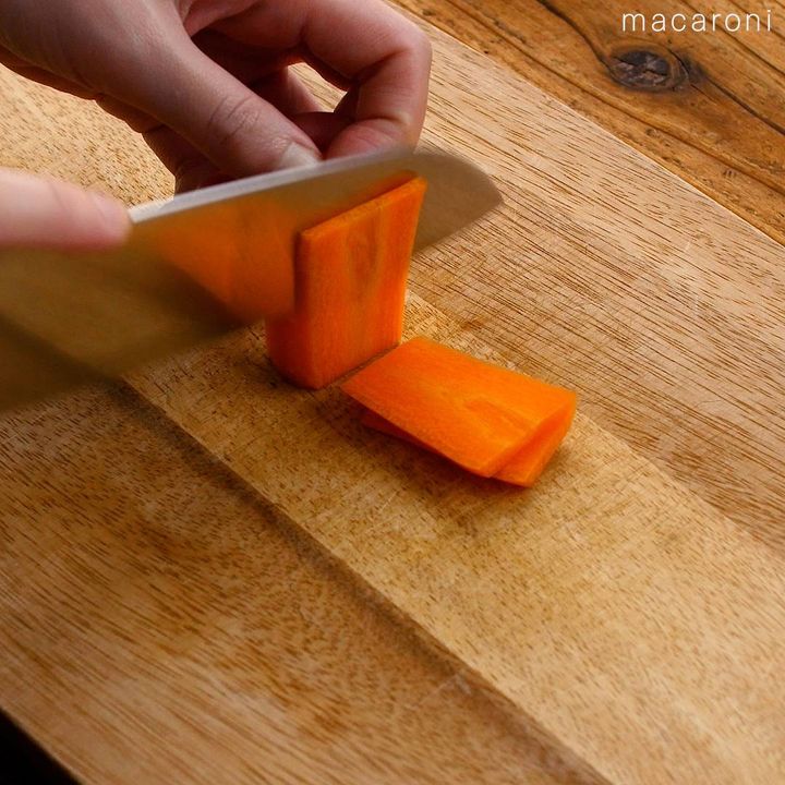 ※玉ねぎと同じか少し細めに切ると、火の通りが均一になります。