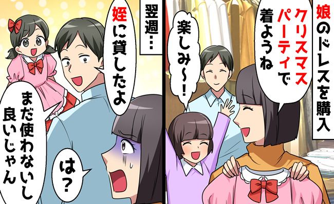 3. 娘のパーティー用に買ったドレス「え、貸したよ?」義妹を優先する夫!妻子を蔑ろにするのでキレた結果