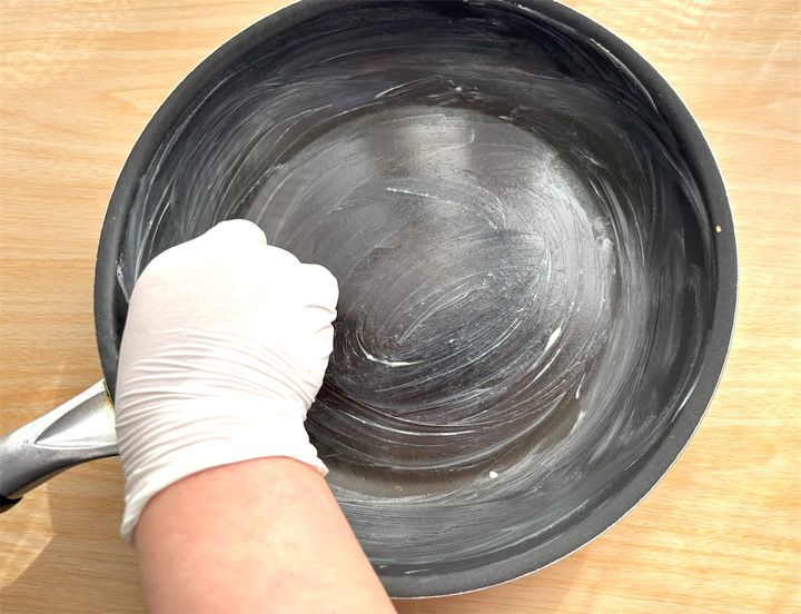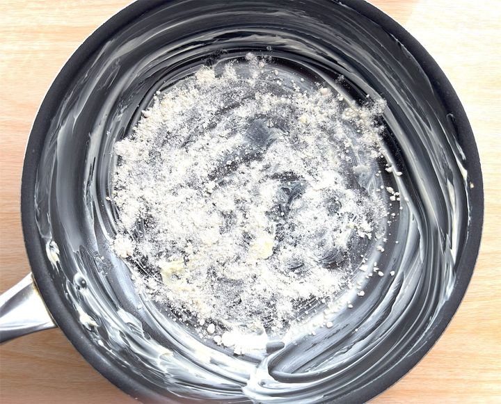 下の画像を参考にして、フライパンの底は砂糖で全て覆われた状態になるようにしてください。