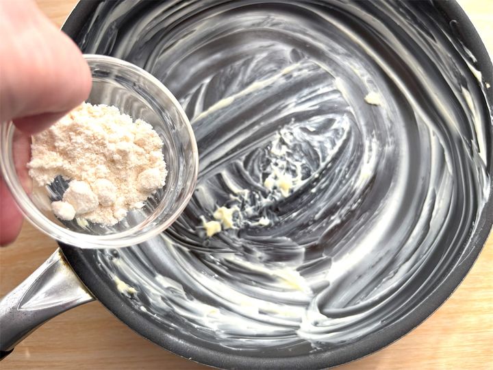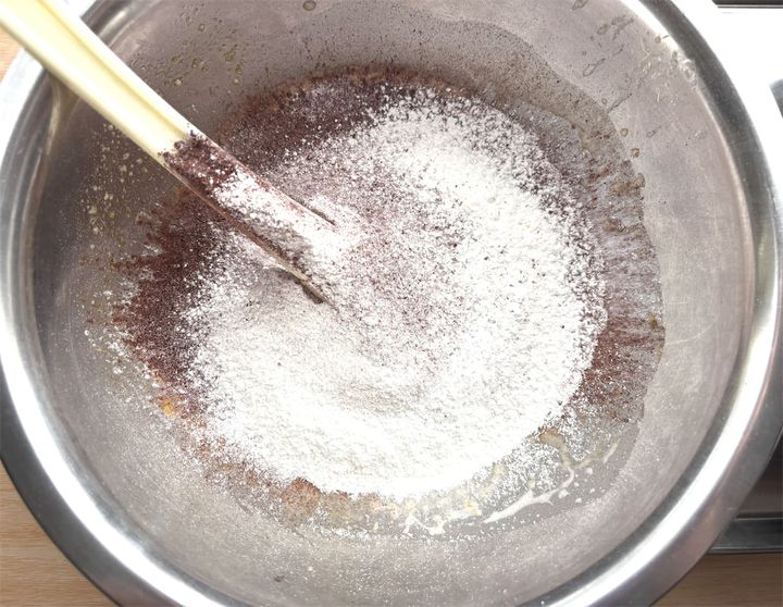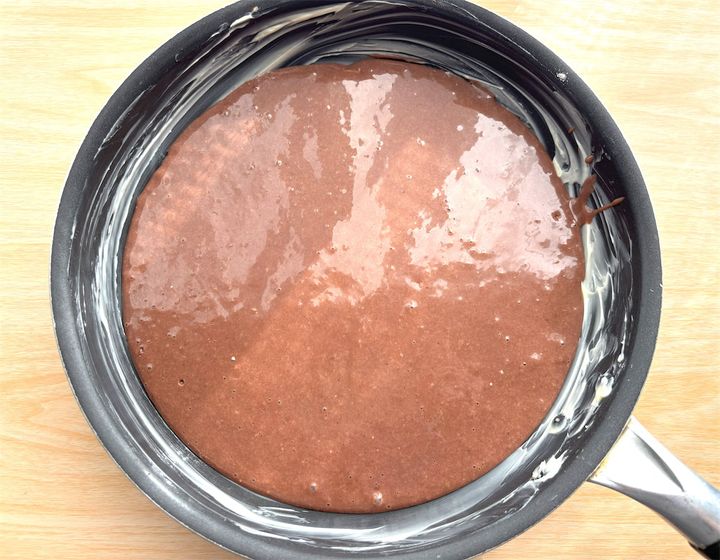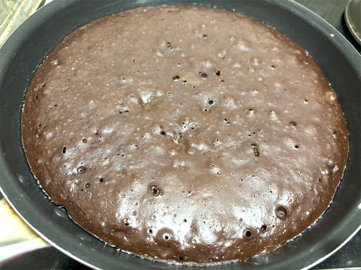 3のフライパンに、4で作ったココア生地を流し入れていきます。