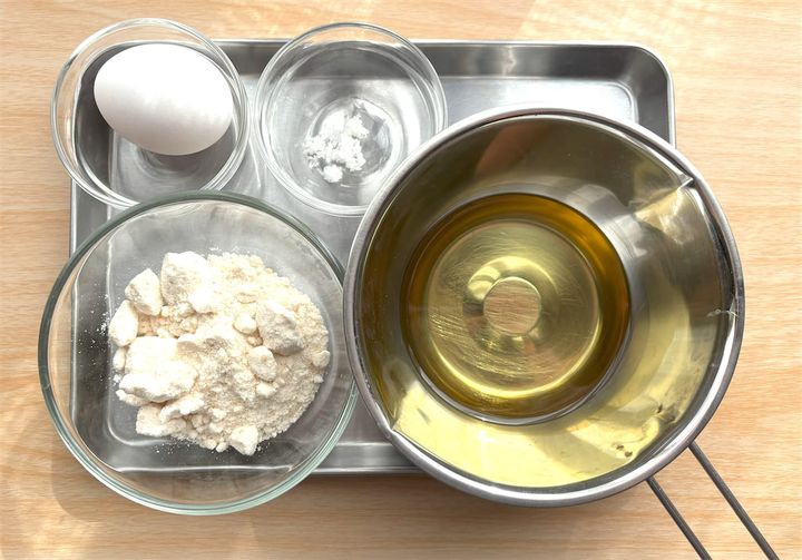 動画内では「バニラシュガー」という材料が使われていましたが、日本国内ではあまり取り扱いのない材料のようでしたので、砂糖とバニラエッセンスで代用しています。