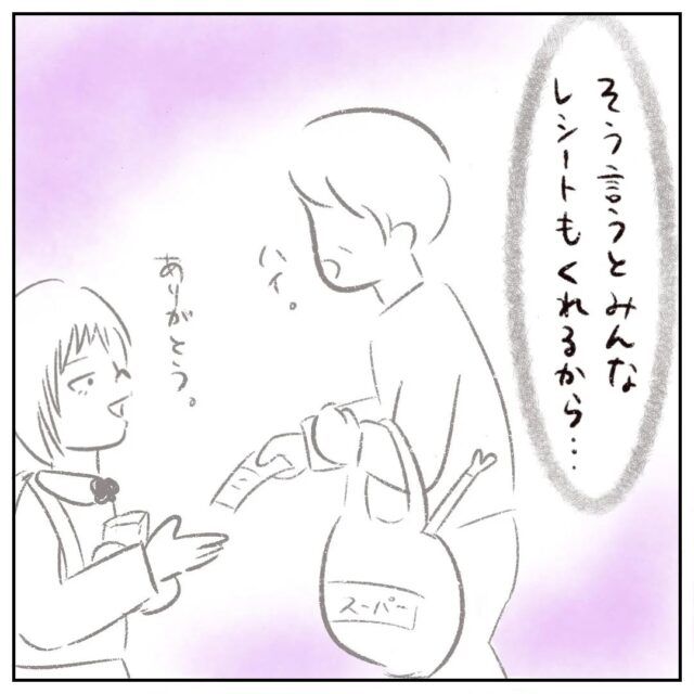 さなかちゃんは、スーパーで大人たちからレシートを貰う理由をまるさんのお母さんに話しました。