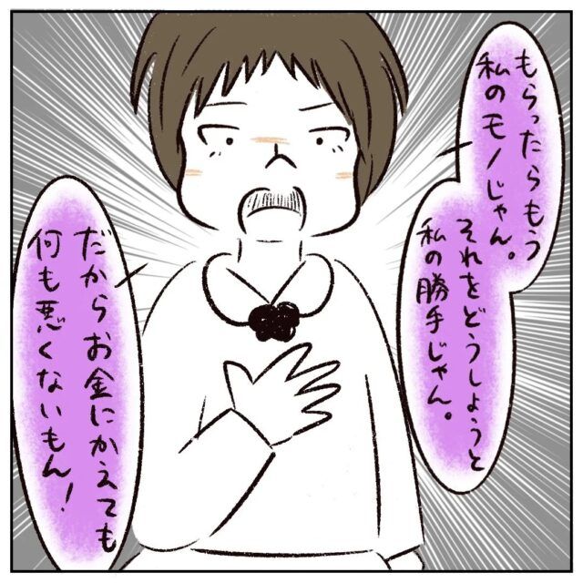 「もらったらもう私のモノじゃん。それをどうしようと私の勝手じゃん。だからお金にかえても何も悪くないもん!」さなかちゃんは言い張りました。