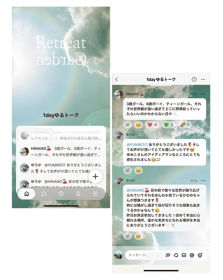 仲間の募集は年に数回しているのだけど、ちょうどこの12月に第二期生の募集中だから、最高の仲間と優しい居場所が欲しいなと思っている人はリトリートガーデンをぜひチェックしてみてね♡ みんなで力を合わせてよりよい人生とよりよい世界を作っていこう〜♡