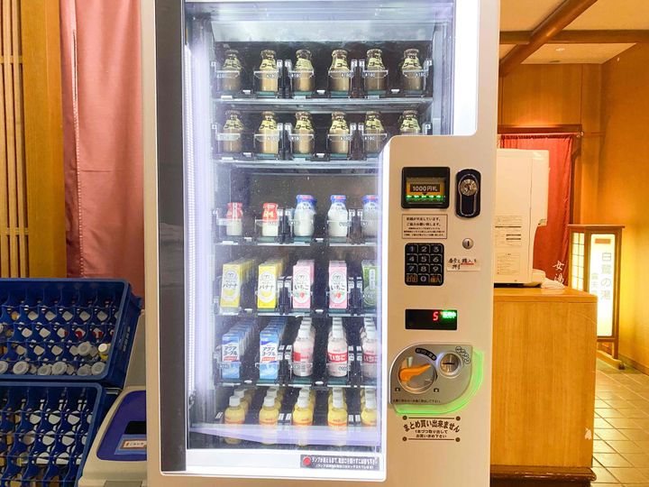無料の水やドリンクの自動販売機、脱衣所にはアメニティがセッティングされていてとても便利でした。