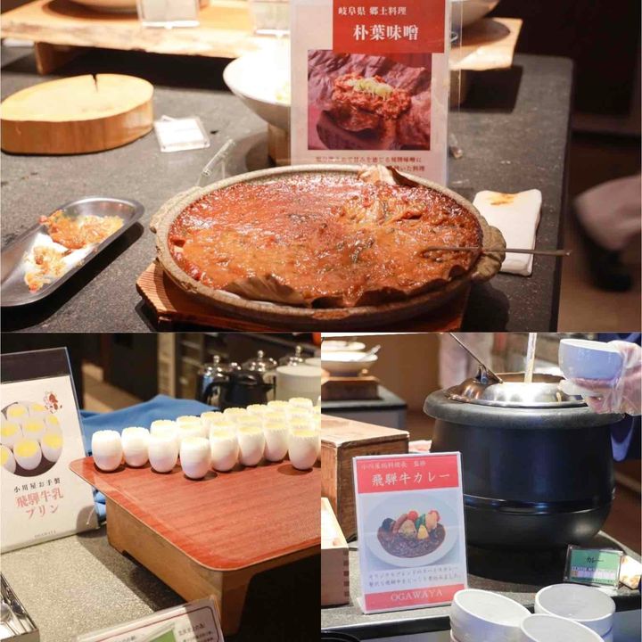 岐阜県の郷土料理「朴葉(ほおば)味噌」や「飛騨牛カレー」、小川屋オリジナルの「飛騨牛乳プリン」など、地元の魅力に出会えるメニューも。