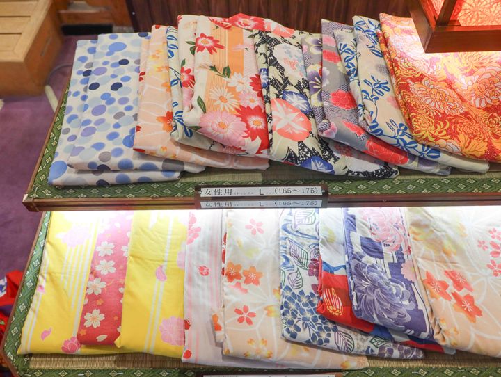 下呂温泉 小川屋オリジナルデザインの浴衣が客室に設置されていますが、より華やかなデザインを楽しみたいなら、ラウンジにある浴衣のレンタルを活用してみてください。お子様は無料、大人は330円で借りられます。