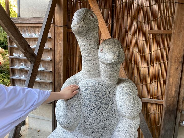 まず現れるのが白蛇様の夫婦、「撫で白蛇」です。大きい方がメス、小さい方がオスで、中央に宝珠を抱えています。