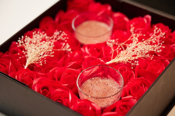 見た目もすてきで、バラの造花が敷き詰められたボックスにデザートが入って運ばれてくる様子に、思わず歓声を上げてしまいます。