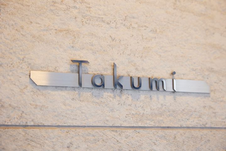 東京メトロ六本木駅から六本木通りを渋谷方面に8分ほど歩き、1本路地に入ったところに「Takumi」はあります。外観は白いレンガで覆われ、店のサインは小さく掲げられているだけというシンプルさ。思わず通り過ぎてしまわないように注意です。