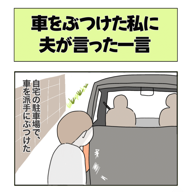 めっちゃええ人。家で車をぶつけて凹んでいた私に夫の優しさが染みる|ぬーこの育児漫画