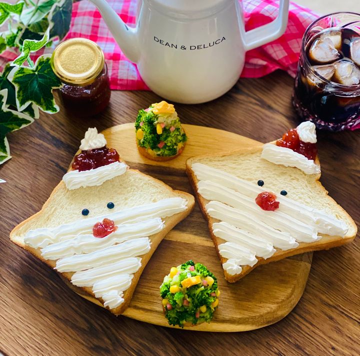 【アレンジトースト】簡単!可愛い!おうちクリスマスにぴったり♪サンタトーストを作ってみた★