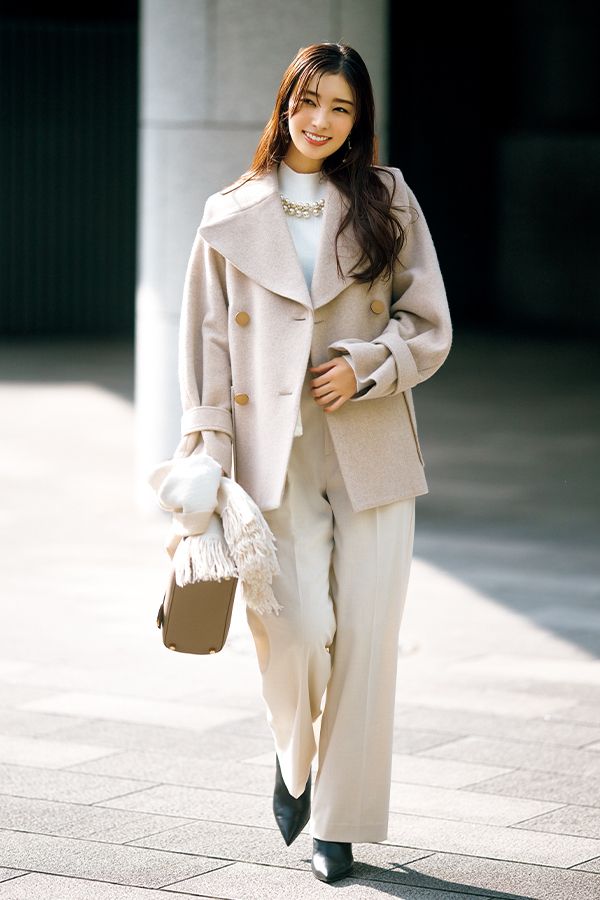 薄手の防寒アイテムを忍ばせて♪ 着膨れ知らずのホワイトコーデ〈12/16のコーデ〉