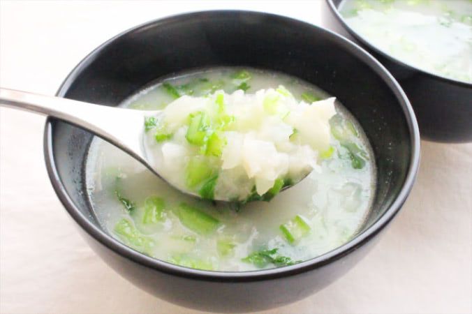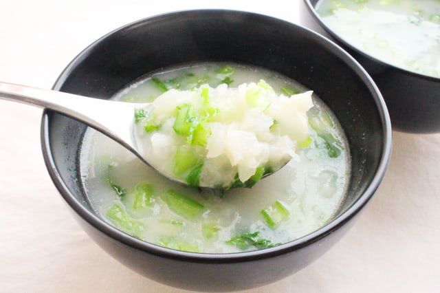 食べてみると、茎がシャッキシャキで、かぶはほろほろ。スープは塩とこしょうがほんのり効いていて、とてもあっさりとした味わいです。飲み口もサラリとしています。