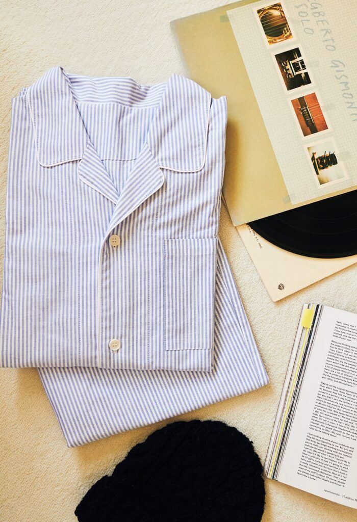『ほぼ日刊イトイ新聞』による服と日用品のレーベル〈LDKWARE〉から、新しくパジャマが登場。〈CHECK&STRIPE〉とスタイリストの黒澤充がコラボレーションした一着は、綿100%のオックスフォード生地で通年着られる。写真のブルーとイエローの2色展開で、ゆったりとしたシルエットにキャンディストライプが爽やか。¥35,200*11月下旬発売予定(ほぼ日刊イトイ新聞store@1101.com) ニットキャップ¥74,800(WMV/ダブリューエムブイ ビズビム トウキョウ 03‒6303‒3717) その他スタイリスト私物