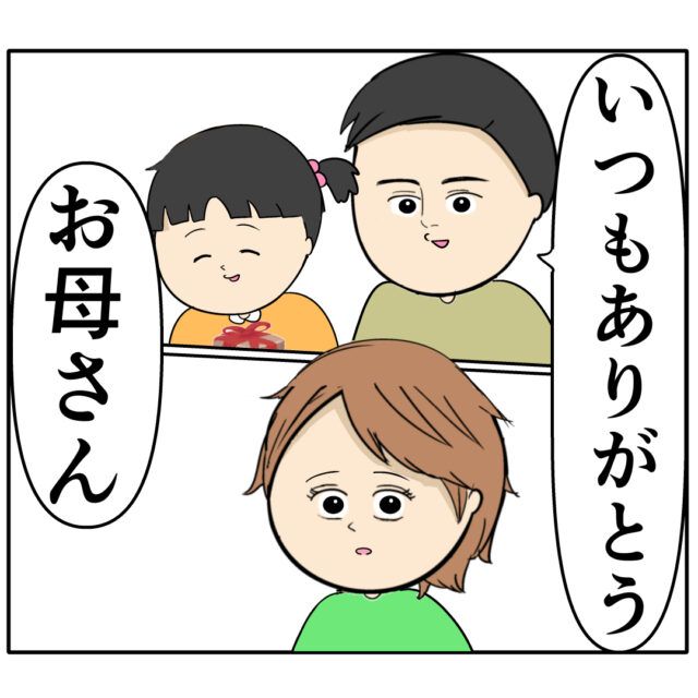 「いつもありがとう」「お母さん」微笑む良し男さんとほの香ちゃんに、驚いた表情ですぐには言葉が出てこないすみれさん。
