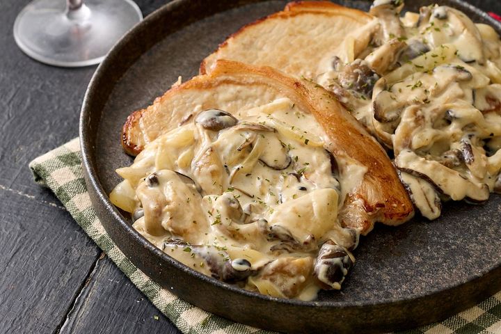 【生クリームいらず】『きのこクリームのポークステーキ』のレシピ/ホリデーシーズンに