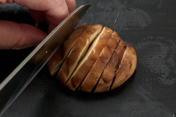 こうすることによって肉がそり返らず、また酒の保水効果でジューシーかつ柔らかい焼き上がりになります。