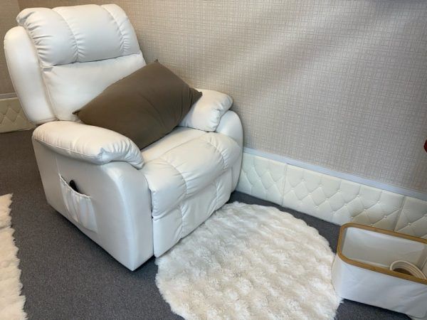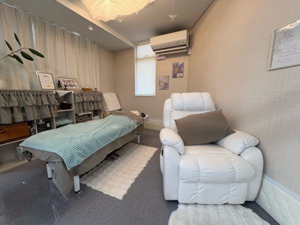 まずは、シートでくつろぎながらカウンセリングです。何を求めてきているのか、どんな施術が自分に合っているのかなど、丁寧な説明に、初めてで緊張していた気持ちもほぐれていきました。