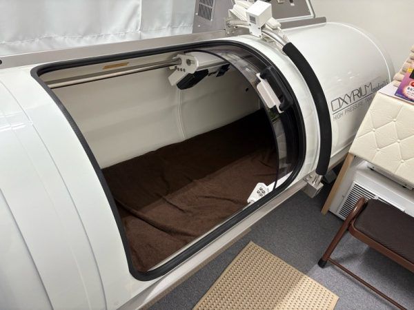 奥には「酸素カプセル」のブースもあります。「酸素カプセル」とはカプセル内に通常より高い気圧の圧力をかけることで、酸素を全身に通常の2倍以上も取り込むことができるそうです。 料金は、学生30分は1200円〜/大人30分は2000円〜です。お得な回数券もあります。