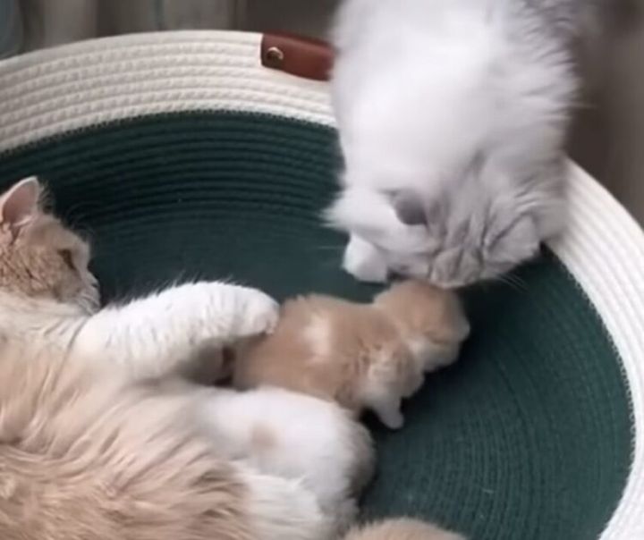 3. 子猫のことが気になるパパ猫「ナデナデしてみたいニャ」しつこくしすぎて