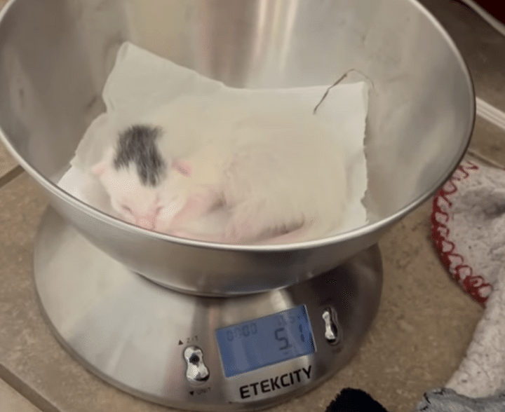 3. 子猫の体重測定をしていたら、勘違いしたママ猫が