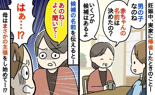 妊娠中、実家に帰省すると「男の子なのね。赤ちゃんの名前は決めたの?」と母。候補の名前を伝えた結果、衝撃の展開に!