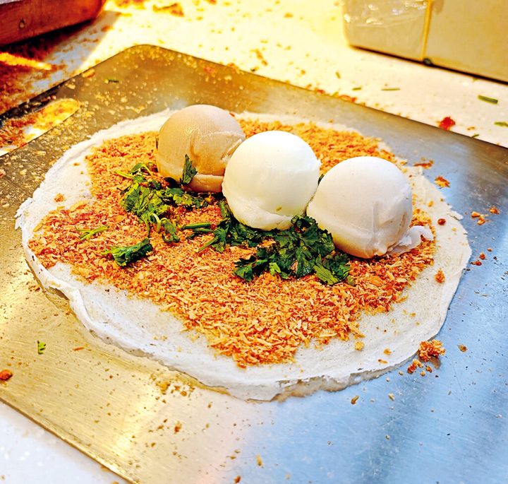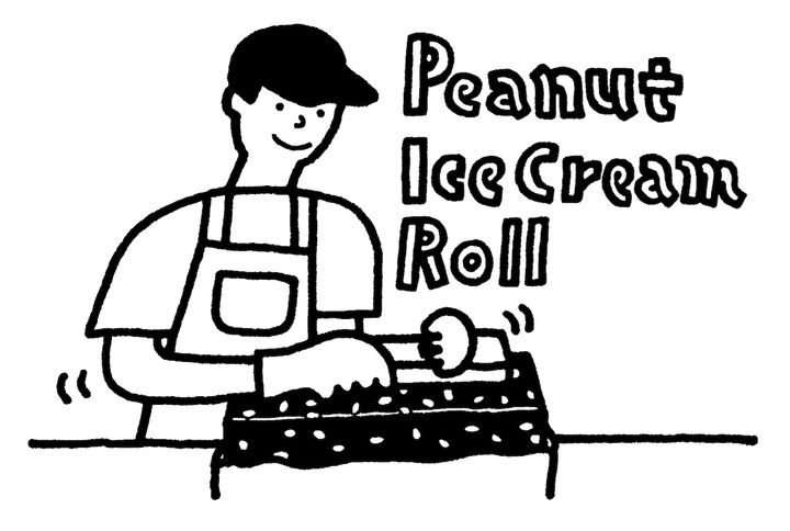 ナイトマーケット(夜市)では様々なスイーツを味わえるが、なかでも多くの人々に親しまれているのが「花生捲冰淇淋」。これは中華風クレープの生地にピーナッツ粉をまぶし、その上にアイスクリームをのせ、さらに香菜(コリアンダー)を添えて、くるんだもの。異色に思える組合わせだが、甘さと香ばしさに香菜のほのかな風味が加わり、クセになる味わいだ。ピーナッツは白ゴマと一緒に巨大な麦芽糖の塊となっており、これをカンナを用いて削り、粉末状にする。発祥は台湾北東部の宜蘭県といわれ、やや粘り気のあるタロイモアイスを用いるのが定番。今回は若者が手がける素材にこだわった2軒を紹介。なお、香菜が苦手な場合は抜いたものも作ってくれるので、「不要加香菜」と伝えてみて。