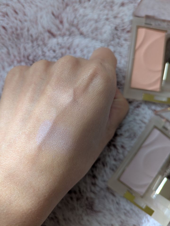 どちらのカラーにも偏光パールが入っているんですが、キラキラしすぎないため肌になじむ。