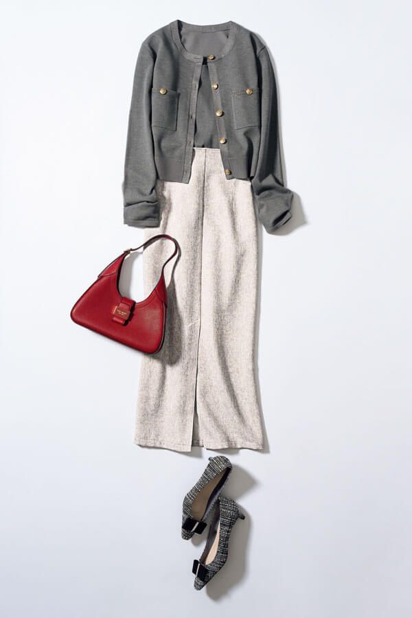 バッグ¥56,100/ケイト・スペード ニューヨーク(ケイト・スペード カスタマーサービス) アンサンブルニット¥19,800/アプワイザー・リッシェ スカート¥8,800/RESEXXY 靴¥12,650/アルテミス by ダイアナ(アルテミ ス by ダイアナ アーバンドック ららぽーと豊洲店)