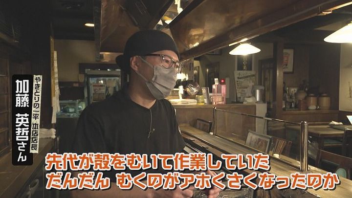 店長 加藤さん:「先代が殻をむいて作業していたんですけど、だんだんむくのがアホくさくなったのか、そのまま焼いて食べたんですよ。したっけ、もう全然いけると」
